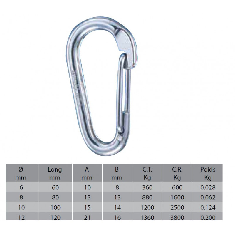 Caractéristiques du Mousqueton de pompier sans œil WICHARD :