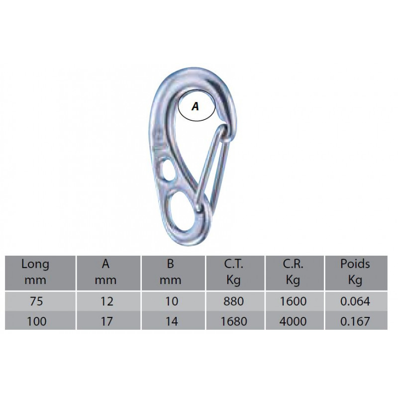 Caractéristiques du Mousqueton de sécurité inox HR WICHARD :