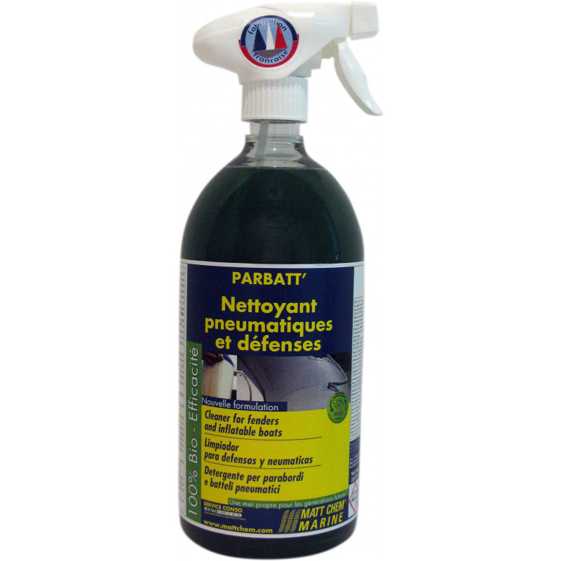 PARBATT’ nettoie parfaitement et sans difficulté les défenses et les pneumatiques encrassés par des souillures de carbone, des dépôts de fumée, des résidus gommés, des salissures grasses... PARBATT’ redonne à la surface traitée sa propreté initiale sans altération du support. PARBATT’ n’attaque pas les alliages légers tels chrome, aluminium anodisé. PARBATT’ est élaboré à partir de tensio-actifs végétaux facilement renouvelables. PARBATT’ est un nettoyant fortement concentré et économique.