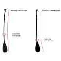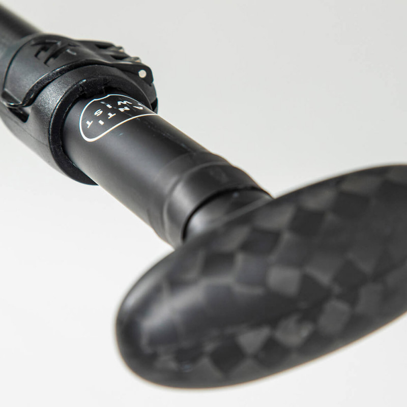 C'est une des pagaies les plus légères et résistantes qui existe actuellement sur le marché grâce au système Union Joint et au manche 100% carbone 3K. La réponse à chaque coup de pagaie a été vraiment augmentée. La pagaie existe en 2 tailles, 7.25" et 6.75" selon votre style de rame. La pagaie est équipée d'une protection ABS présente sur la tranche de la pale disponible avec un manche à longueur fixe ou variable. Le système Anti Twist avec ses rainures sur l’extension et son système de taquet adapté met fin aux efforts inutiles pour verrouiller le réglage du manche. La poignée et la pale sont en permanence parfaitement alignées.