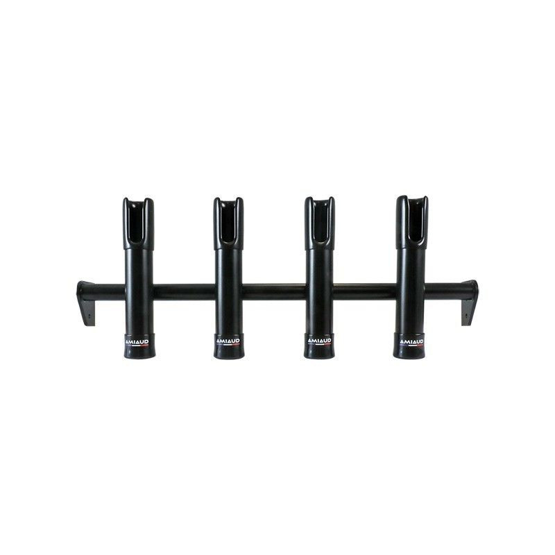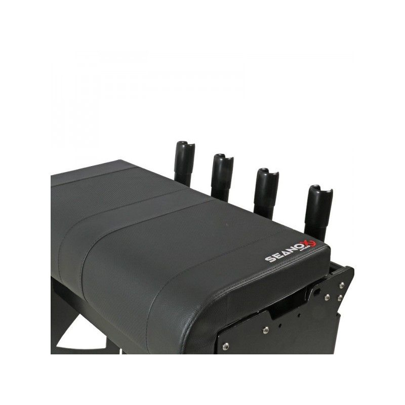 Rack 4 porte-cannes à pêche en inox servant aussi de mains courantes, spécialement adapté pour être installé à l'arrière du leaning-post "Bolster" taille standard Seanox. Un accessoire très robuste et ergonomique.