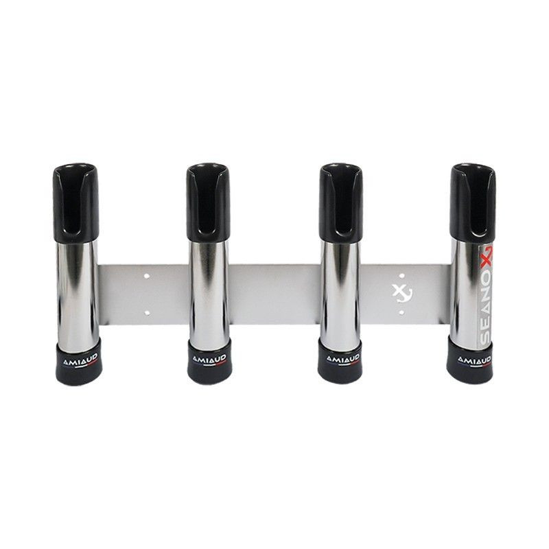 PORTE-CANNE INOX 4 CANNES - EMBOUTS NOIRS - FIXATION PLAT-BORD ET BALCON - SEANOX