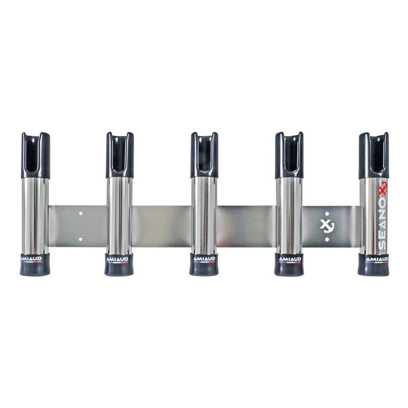 PORTE-CANNE INOX 5 CANNES A PÊCHE - EMBOUTS NOIRS - FIXATION PLAT-BORD ET BALCON - SEANOX