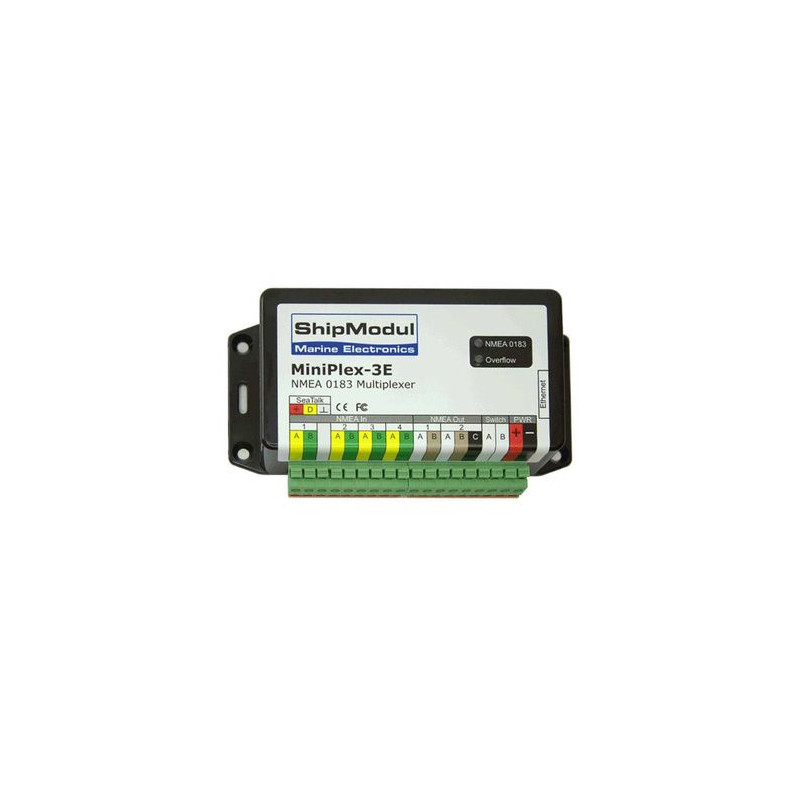 Le MiniPlex-3ETH est un multiplexeur NMEA compatible Ethernet, combinant des données de jusqu’à 4 instruments de navigation en 2 sorties NMEA (ports émetteur), et une interface Ethernet pour une connexion à un ordinateur. La connexion Ethernet peut coexister et les données peuvent être acheminées entre les deux interfaces. Il prend également en charge un AIS et d'autres appareils NMEA ayant des vitesses de transmissions élevées, jusqu'à 57600 bauds.