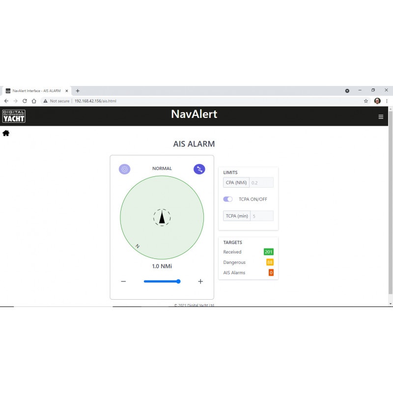 NavAlert est le système de surveillance et d’alarmes NMEA 2000 de Digital Yacht, NavAlert permet de définir une alarme pour tout paramètre disponible sur le réseau NMEA 2000 du bateau. Il peut s’agir de données de navigation telles que la profondeur, le cap ou la vitesse, de données électriques telles que la tension et de données relatives au moteur/générateur, notamment la température, la pression, le niveau des réservoirs, le débit de carburant, etc.
