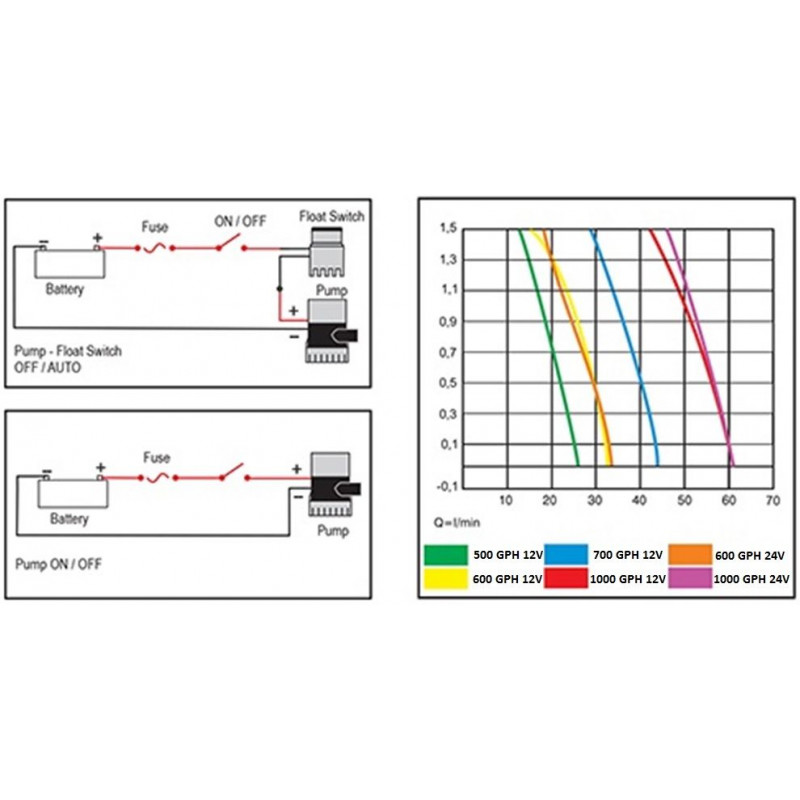 - 500 GPH : environ 1892 L/h ou 31,5 L/min