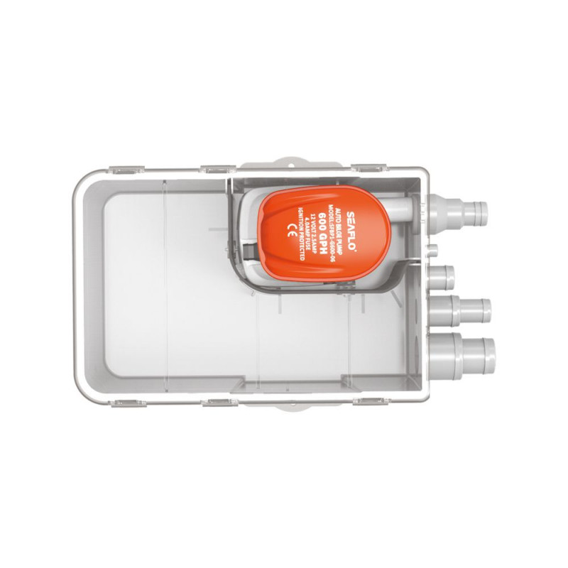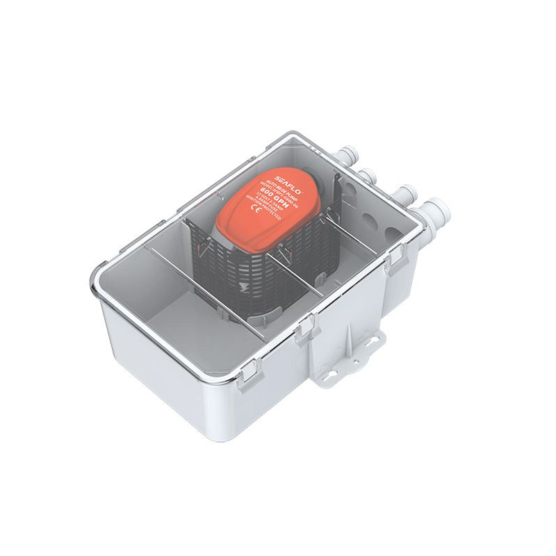 Le collecteur d'eaux usées SEAFLO est prévu pour receuillir les eaux de douche et d'évier avant leur évaucation via la pompe centrifuge incluse dans le coffret.