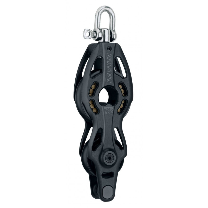 Les Poulies BLACK MAGIC HARKEN affichent désormais de nouvelles lignes plus profilées, sans la moindre concession sur leurs performances exclusives. Ces poulies robustes et légères intègrent de solides roulements à rouleaux en Torlon® offrant une excellente résistance à l’usure ainsi que des roulements à billes en Derlin®. Elles sont idéales pour les systèmes de réglage fréquemment sollicités, tels que les écoutes de grand-voile et de spi, les bastaques et les drisses. L’émerillon à trois positions peut pivoter librement ou être verrouillé parallèlement ou perpendiculairement à la poulie.