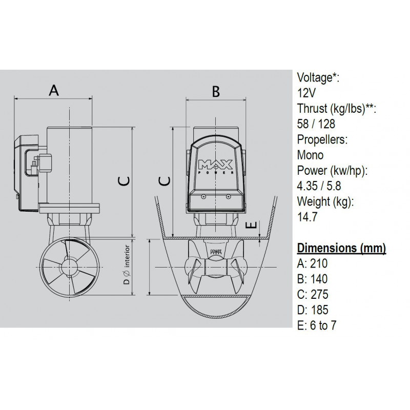 Propulseur d’étrave CT60 en composite MAXPOWER en tunnel pour bateau jusqu’à 9.50 m.