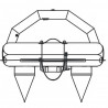 Ce radeau de survie est structuré par 3 compartiments gonflables indépendants fabriqués en caoutchouc : deux flotteurs et un arceau, équipés de valve anti-retour. Le plancher est constitué d’un tissu avec fond en caoutchouc et d’une mousse à cellules fermées, et est recouvert d’un film aluminium. Les tissus et la toile de tente imperméable sont respirants. Enfin, le radeau est équipé de ballasts antidérive grâce à 4 poches de stabilisation à remplissage instantané.