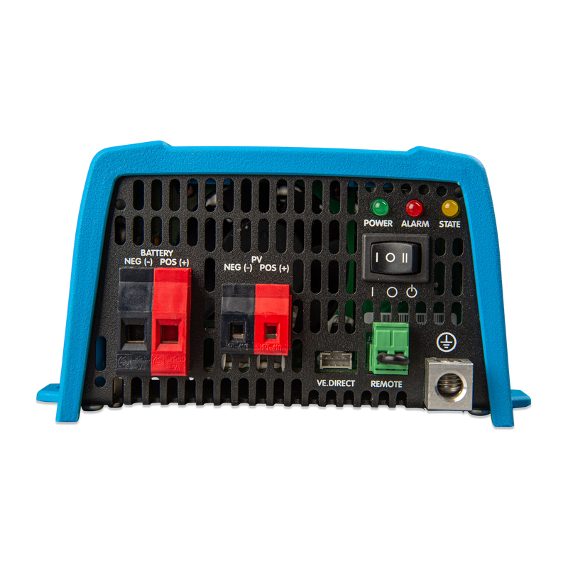 Le chargeur solaire assure la charge des batteries par l’énergie récoltée sur vos panneaux solaires. L’algorithme de charge est programmable.