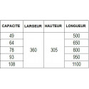 | Capacité | 49 L | 64 L | 78 L | 93 L | 108 L |