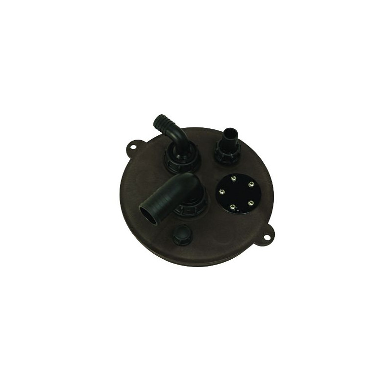 Le couvercle est livré avec 4 raccords coudés de diamètre 38mm, 25mm (x2) et 20mm. Il est également équipé d'un emplacement pour pouvoir y placer une jauge.