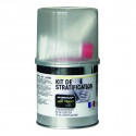 Ce kit de stratification contient : 250 g de résine polyester, 5 g de catalyseur et 1 bande de taffetas 1.10 ML x 9 cm.
