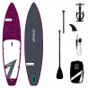 Accessoires composants le Pack Sac de transport: Poignées confort, poche de rangement, sangles et boucle de serrage Pompe haute pression (22 psi) Pagaie alu en 3 parties Aileron amovible à glissière Leash de sécurité très léger à fixer à la cheville Elastique de rangement sur le pont |