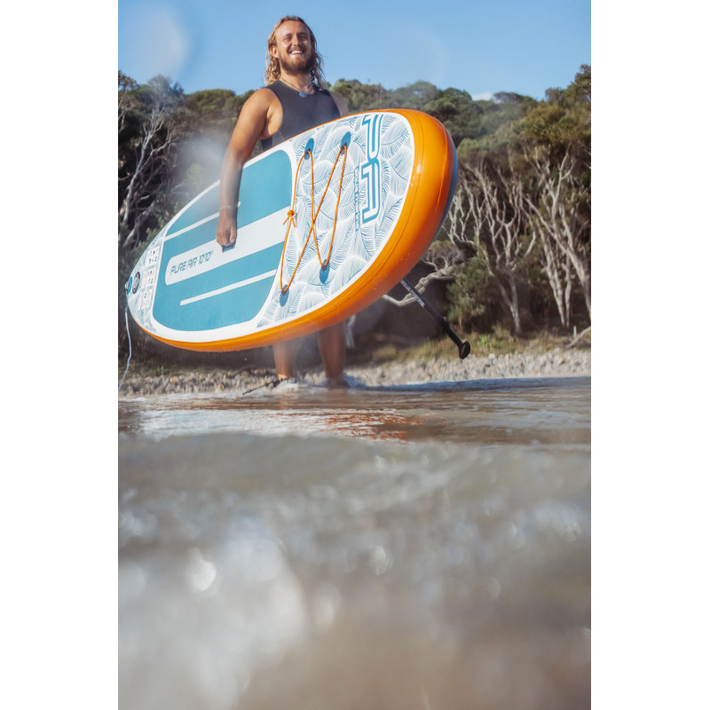 Le paddle gonflable Aqua Marina Pure Air 10.10 est présenté avec un nouveau design. Ce SUP Paddle gonflable est un des meilleur rapport qualité / Prix du marché. Ce paddle est adapté aux gabarits jusqu'à 145 kg, grâce à ses 81cm de large et de 15cm d'épaisseur. Ce paddle gonflable vous apportera stabilité et équilibre lors de vos balades.