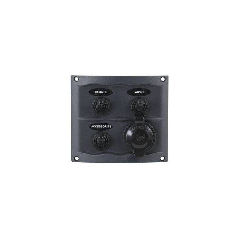 TABLEAU ÉTANCHE NOIR 3 INTERRUPTEURS AVEC PRISE