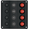Tableaux électriques fabriqués en plastique noir, avec interrupteurs à bascule et fusibles automatiques thermiques réarmables. Livrés avec avec adhésifs pour identification des interrupteurs. Certifiés IP54 (équipement électrique protégé des infiltrations limitées de poussière et des projections de liquides).