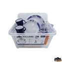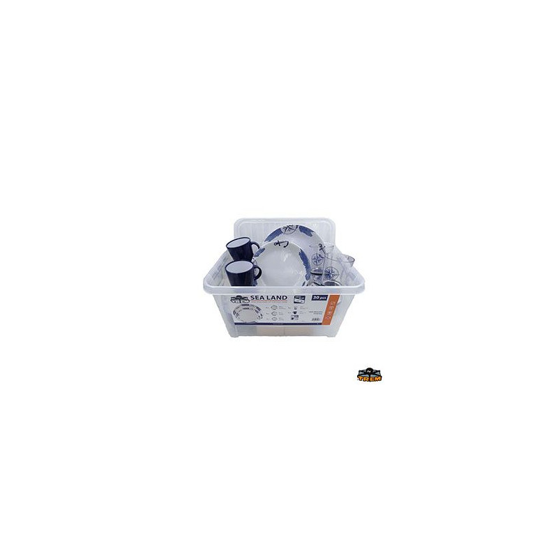 Boîte avec : 6 assiettes / assiettes creuses / assiettes à dessert, 6 verres 30 cl et 6 tasses.