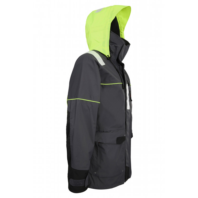 Pour la visibilité par mauvais temps ou navigation nocturne, 3 bandes réfléchissantes ont été installées sur la veste (épaules et sur la poitrine)