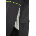 Afin de garantir une très bonne imperméabilité, les coutures sont étanchées et la capuche est très protectrice. Elle comporte une visière transparente pour favoriser votre visibilité par temps de pluie et une attache casquette est présente sur le col.