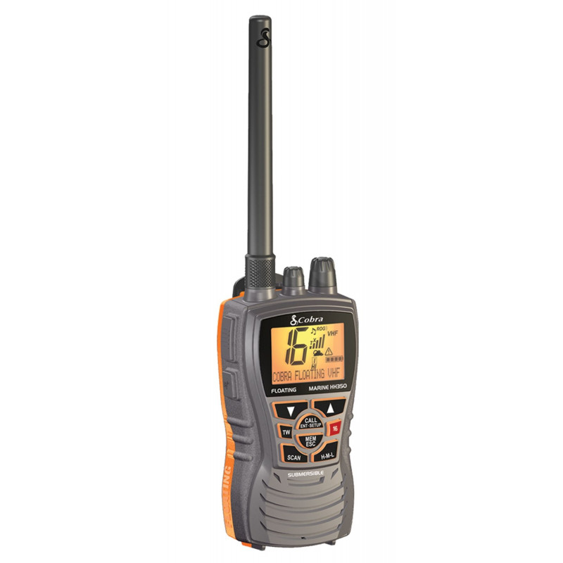 La VHF portable flottante et étanche Cobra H350 est idéal pour vos communications en mer. Vous ne perdez jamais votre radio VHF grâce à sa conception flottante et sa couleur orange vif vous pourrez la récupérer facilement en cas de passage par dessus bord.