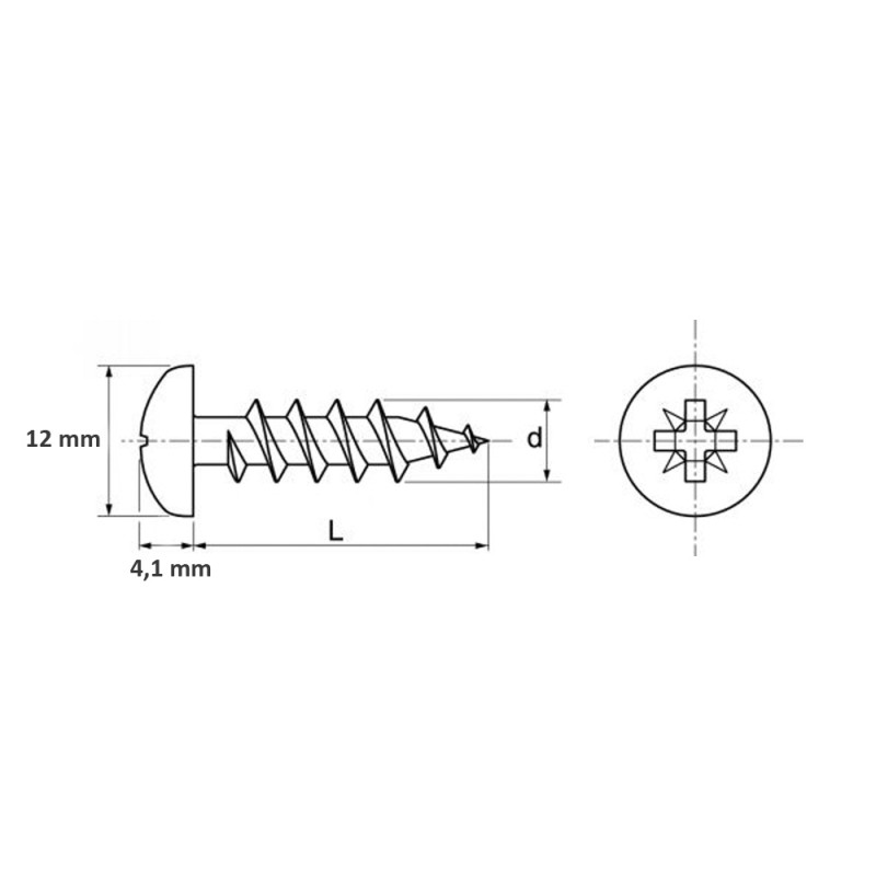 Vis autotaraudeuse M6 cruciforme à tête cylindrique permettant de fixer des footstraps. Visserie de haute qualité spécialement conçue pour une utilisation marine.