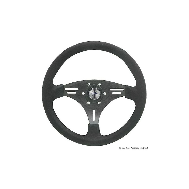 Le volant Manta 3 branches est constitué d'une structure en aluminium anodisé et d'une couronne en polyméthane souple.